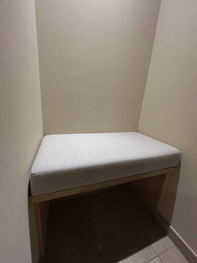 Lors d’une première visite, nous avons discuté de leur projet afin de comprendre leurs attentes et les guider dans le choix du revêtement. Une des contraintes de ce lieu étant l’eau et l’humidité, le textile choisi devait être déperlant pour convenir aux usages d’un SPA.