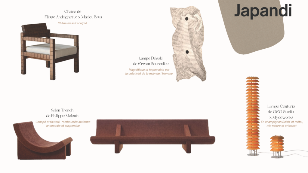 Notre partenariat avec l’Ameublement français et Le French Design, nous a permis de découvrir leur sélection de créations uniques et projets inspirants de la dernière Design Week milan / new york paris et 3days of design de Copenhague et les éditions de Maison et Objets. Lors du webinaire “Cahiers de Style by Le FRENCH DESIGN”, leur analyse conjointe avec Louise Anjolras, consultante en stratégies créatives, nous a permis de décrypter les styles émergents, les innovations en matière de matériaux et les influences culturelles qui vont façonner le paysage du design en France pour le deuxième semestre 2025.